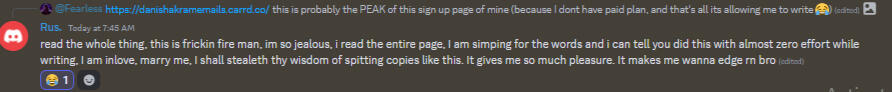I am NOT a cringe-IG/ Discord stalker. I am reading this because I'm NOT a complete idiot, I'm just checking how this page ends...(This is how it ends). After reading this big bold text with 0% value and 100% nonsense, I will click the BIG, RED, JUICY sign up button below to sign up to the email list and start receiving some good ol' value-filled emails.